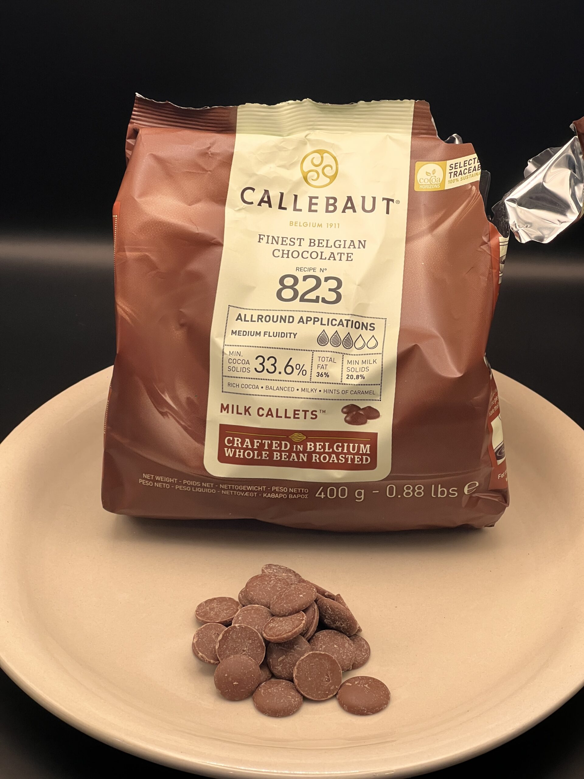 De Callebaut 823 is de populairste melkchocolade van Callebaut. Met 33,6 % cacao en een volle, romige smaak met toetsen van karamel is ze de perfecte allrounder voor pralines, mousses, truffels en gebak.