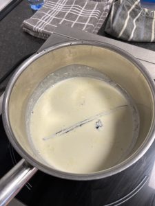 - Die Creme und die Vanille in einem separaten Topf aufkochen lassen.
