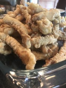 Leg de gefritureerde vis een minuutje op keukenpapier zodanig dat overtollig vet wordt opgenomen.