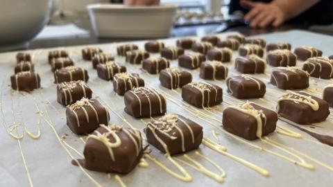 Une gâterie luxueuse qui associe la riche saveur du lait de poule à la douceur du chocolat blanc, le tout couronné d’une couche croustillante pour une finition parfaite.