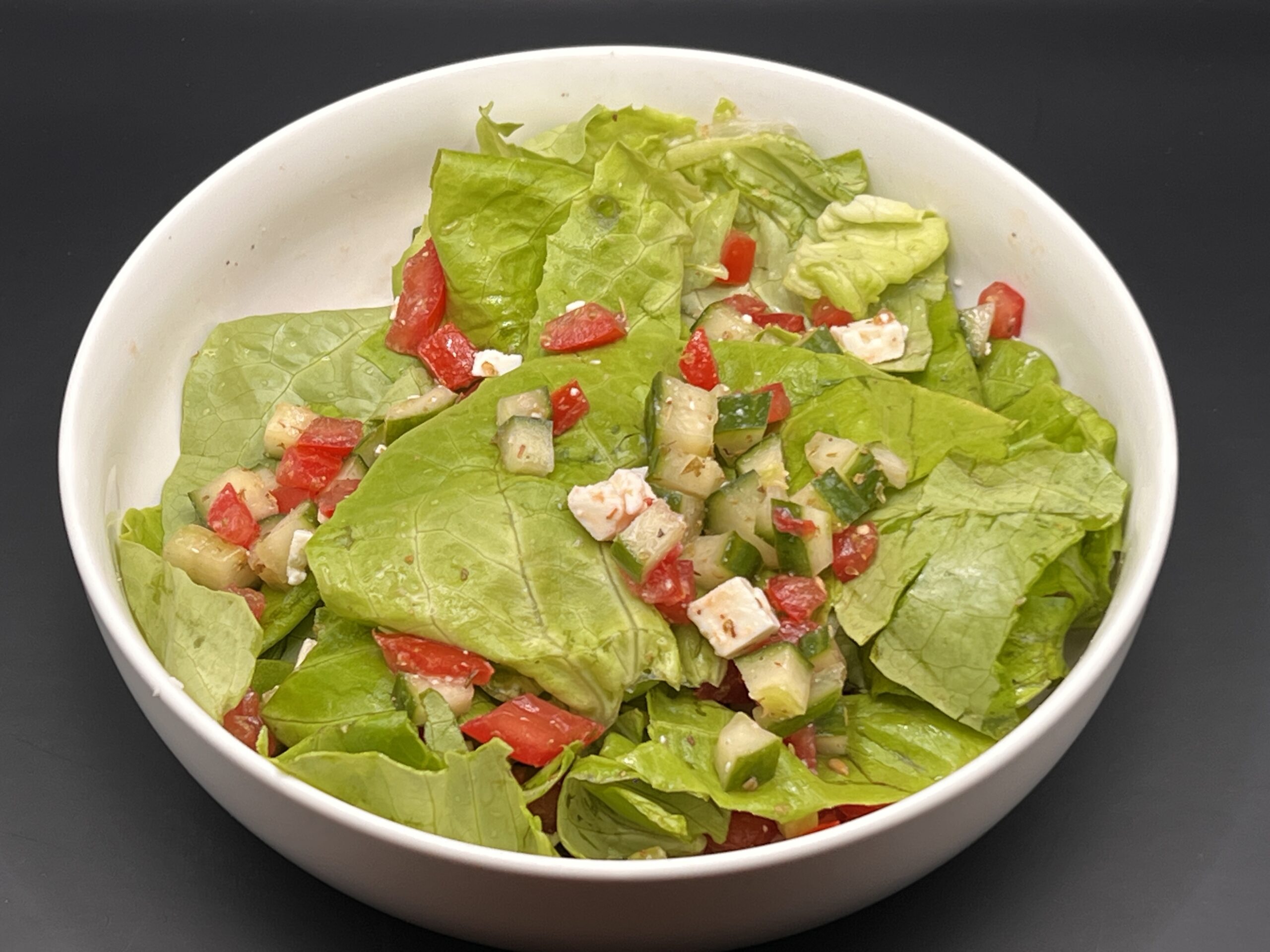 - Verse la vinaigrette sur la salade et mélange délicatement.